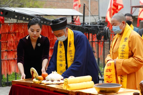 礼祭环节,陕西省政协原副主席田源、西安市政协原副主席王俊仁、中国侨商会常务副会长雷宁、陕西省社科院研究员张宝通、西安西五台云居寺住持吉祥法师、太乙祖庭青华宫住持黄世真等24名行业代表分别以玄酒、花蒂、毛血、大羹、丝帛、汎酒、进熟、胙肉、玉璧敬献始祖母华胥氏,表达中华儿女对始祖功德的无限敬仰和深切缅怀。