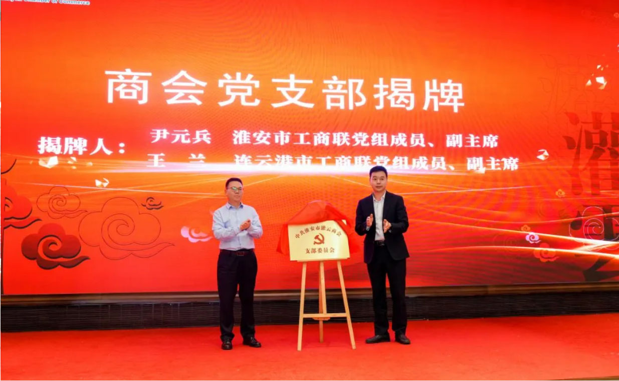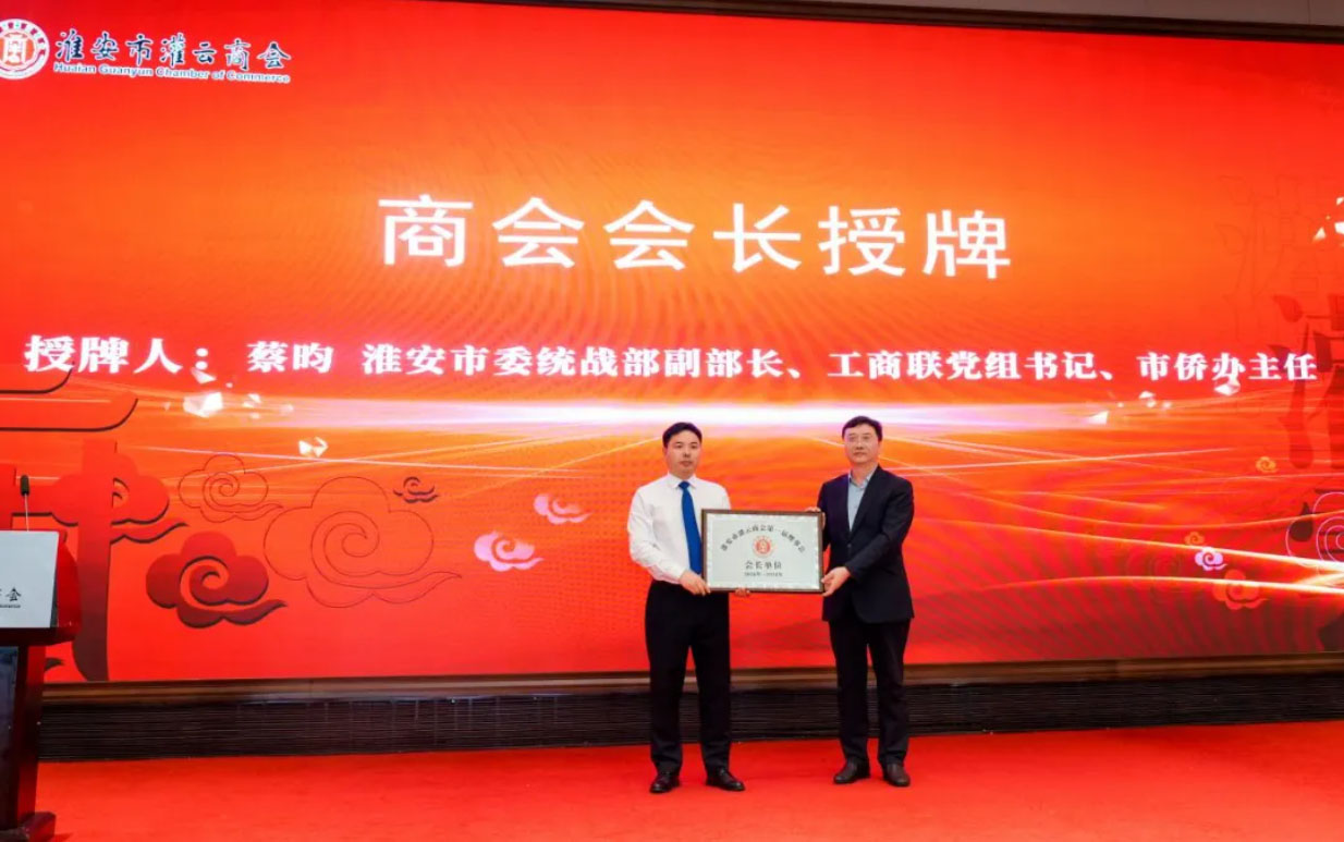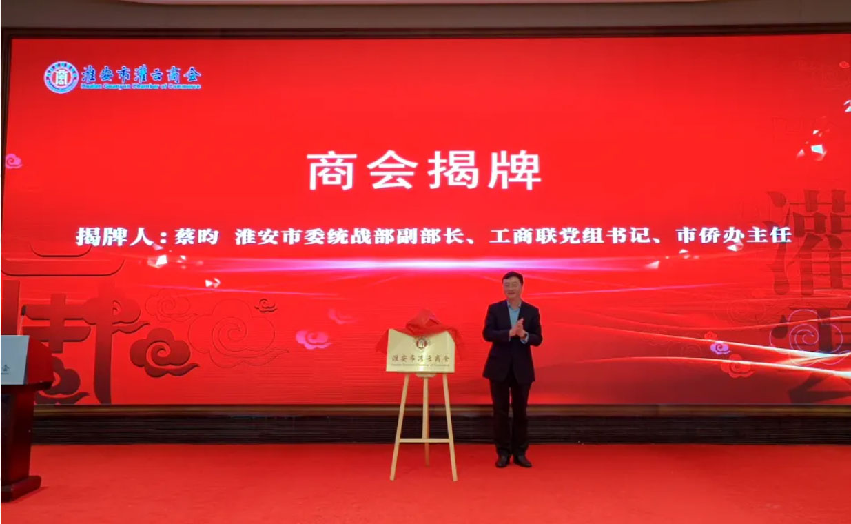 4月18日下午,淮安市灌云商会成立大会召开,淮安市人大常委会党组成员、秘书长,机关党组书记、二级巡视员江山,淮安市委统战部副部长、市工商联党组书记、市侨办主任蔡昀,连云港市工商联党组成员、副主席王兰,连云港市工商联党组成员、副主席朱述亮,淮安市工商联党组成员、副主席、市总商会党委书记尹元兵,省工商联组织建设部一级主任科员王铁,市自然资源和规划局党委委员、副局长王余江,灌云县政协副主席、工商联主席江劲松,淮安市清江浦区政协副主席尹希海,连云港市工商联会员部部长、四级调研员王祥,淮安市总商会党委副书记、四级调研员董涛等领导出席会议。淮安市工商联会员处处长朱斌主持会议。