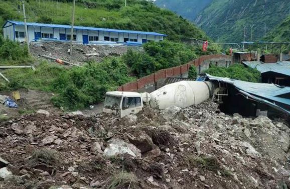 Photo taken on Aug. 14, 2019 shows the site of a rock collapse at a section of the Chengdu-Kunming railway, southwest China. An unknown number of people were missing after a rock collapse in southwest China's Sichuan Province, the local railway authority said Wednesday. The rock collapse happened around 12:44 p.m. at a section of the Chengdu-Kunming railway in Ganluo County, according to China Railway Chengdu Group. Rescue work is underway. (Photo by Cao Shang/Xinhua)