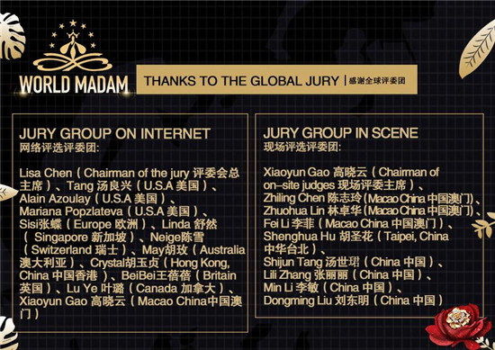 First is the sense of international. Under the crisis of 2020 pandemic, WORLD MADAM still received applications or registrations to host from 31 countries and regions around the world. According to reported data, among the 11,000 candidates who signed up for the World Madam competitions, 195 madams had won awards in national level contests. There are 103 contestants in for the Global Finals. The involving countries and regions and the participation of many madams, as well as the Global Finals and Awards Ceremony in Macao, it was a truly international event;