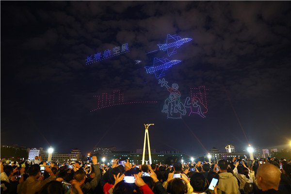 夜幕之下,2025架无人机以天为幕、执光为笔,绘就“相遇”苍穹画卷。从长春航空展跃然夜空,到录取通知书、航天员巡天相继呈现,最终定格于“四时俱好是长春”的深情告白——整场表演既是视觉盛宴,更是城市航空精神的璀璨绽放。