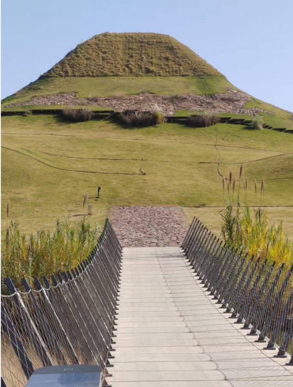 被誉为“东方土石金字塔”的八亩墩越王陵是本次参观的重点。该陵墓坐落于龙山越国贵族墓群核心区域,占地约八亩,距今已有约2500年历史。墓园结构完整,涵盖主墓、陪葬墓及隍壕,总面积约3.5万平方米。主墓封土呈覆斗形,以分块版筑工艺砌筑,虽历经沧桑,仍可见其雄伟形制。2016至2019年间,考古人员在此共清理陪葬墓31座,出土陶、玉、石等各类器物五百余件。其中,主墓所出玉石冠饰与服饰纹样精美、工艺高超,代表了越国手工艺的巅峰水平。尽管墓主身份仍有争议,但有观点推测其为越王勾践祖父夫谭,更为这座古墓蒙上了一层神秘面纱。