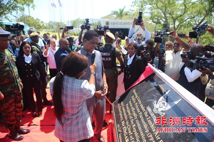 赞比亚总统伦古为卢萨卡华企KINGSLAND项目剪彩