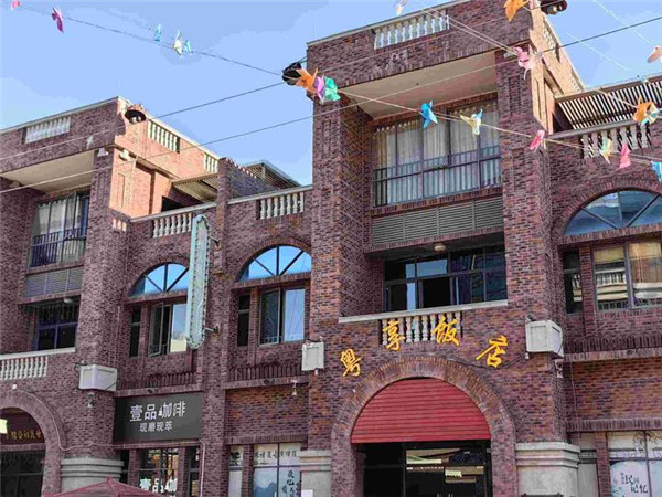 小镇不大,约百余米长,一端铁轨上是火车头、车厢,一端是一架飞机,可都是实物。据说火车头还可以正常运行,喷气、鸣笛,这在全国也是仅此一处。 平板车厢还是一个移动的舞台,每逢节假日会上演各种精彩节目。