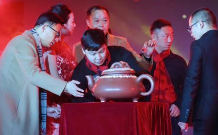 与会的奥运冠军陈玘先生在壶上签名(图中)